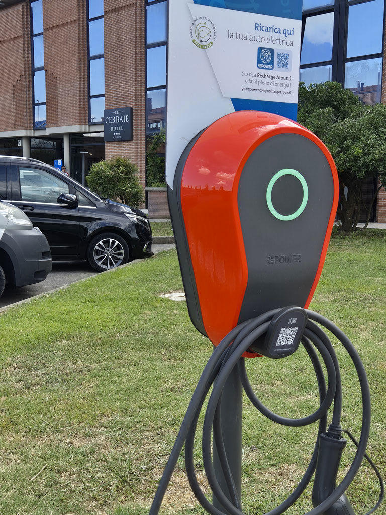 Nous avons installé 4 stations de recharge disponibles pour tous les voyageurs, y compris ceux qui ne séjournent pas à l'hôtel, avec des puissances allant de 7,4 à 22Kw/h.